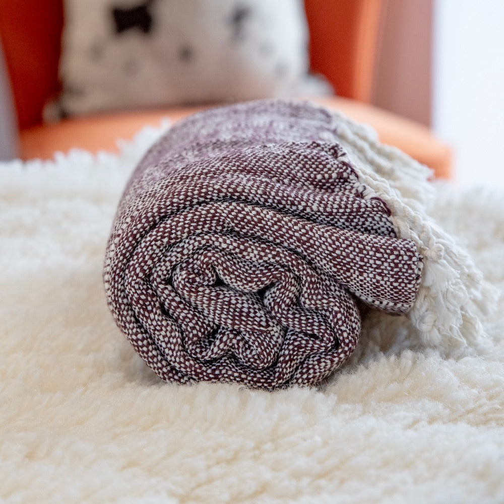 The Palermo is an unusual style, as it can be used as either a towel or a cosy throw, thanks to its quite substantial weave, which is suitable for both purposes. We love that it's super soft and of a looser weave, produced by a small traditional Atelier using the old method of hand-operated looms. The pattern is constructed of the interwoven colour along with a cream yarn, giving a lovely 'dappled' effect, quite unusual in design. Perfect for cosy evenings on the sofa, a decorative picnic blanket, or a bracing dip in the sea...